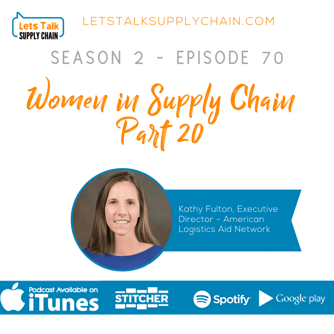 In this episode we talk to Kathy, executive director of the American Logistics Aid Network, an organization that provides supply chain assistance to disaster relief organizations and other non-profits. Kathy has worked in the supply chain and IT industry for 20 years and joined ALAN in 2010 when she took an interest in supply chain and emergency management, and started working on efficient coordination of logistics activities during disasters.